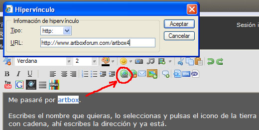 Me pasaré por artbox. Escribes el nombre que quieras, lo seleccione y pulsas el icono de la tierra con cadena, ahí escribes la dirección y ya está.