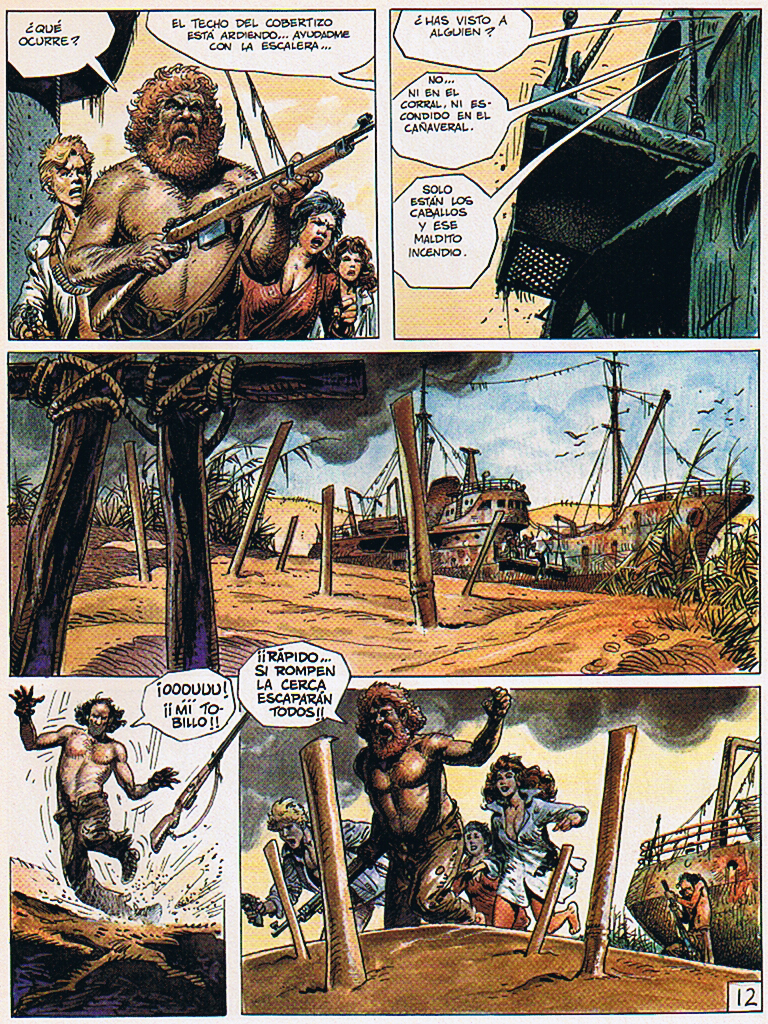 Voy a poner imágenes de un cómic español que me gusta bastante se llama hombre y es dibujado por José Ortiz y el guión es de Antonio segura, un cómic inglés slaine ilustrado por Simon Bisley y el guión es de patt mills, y tercero un cómic polaco-belga, thorgal, uno de mis preferidos, los dibujos son de rosinsky (polaco) y el guión de van hamme (belga).