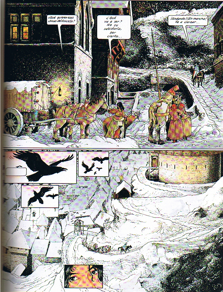 Tienes razón gordo, tiene un dibujo espectacular. Ahora subiré otras imágenes de otros dos cómics que me gustan bastante, los compañeros del crepúsculo de bourgeon (francés), es del medioevo, y valerian agente espacio-temporal, que tiene un guión estupendo de p. Christin y dibujante. C. Mezieres.