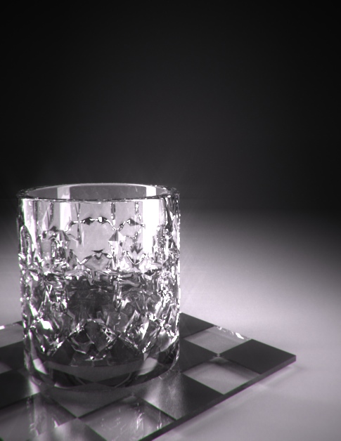 De todas formas, con el motor interno de render no puedes hacer un render realista del cristal posiblemente a lo máximo que llegues es a lo que ya tienes (una vez subido el depth).