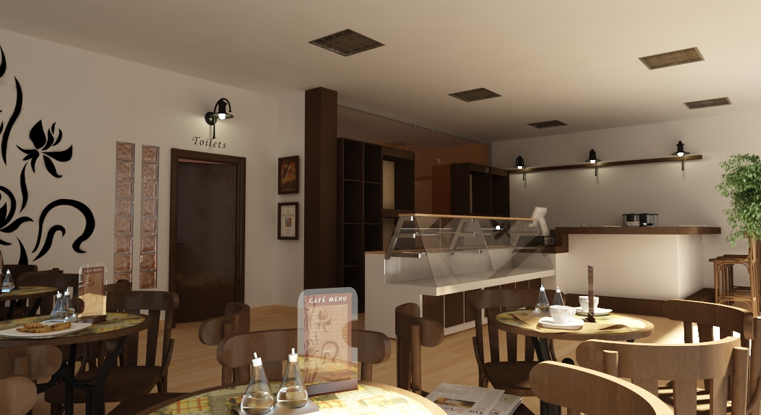 Hola de nuevo después de tanto tiempo sin pasarme por aquí, la crisis esta jodiendo de más. Bueno, aquí os dejo unas cuantas imágenes que llevo hechas de una cafetería que me han encargado, todavía le queda mucho, necesito las críticas y los consejos y saber todo todo lo que está mal. Gracias.