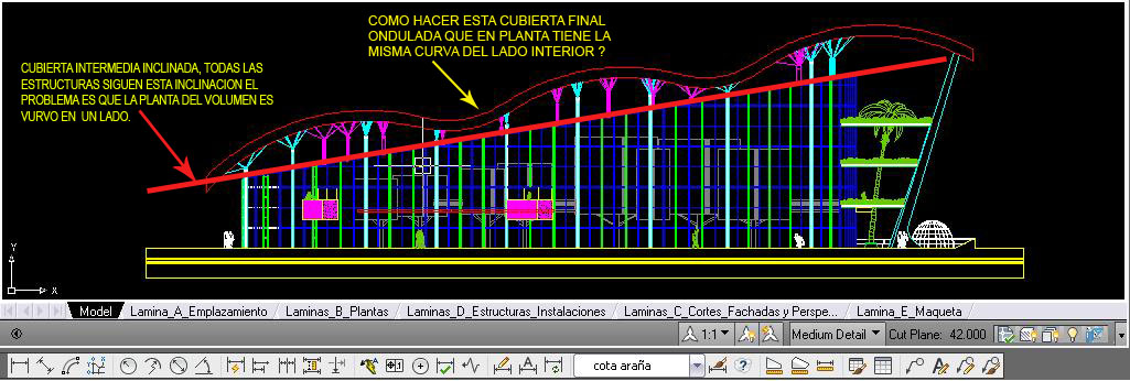 Bueno el problema es que diseñé un proyecto en 2d AutoCAD que está compuesto por líneas curvas y rectas, y en fachadas y volumetría tiene variaciones en alturas hay volúmenes que comienzan con una altura y terminas en una distinta, este es mi problema, cómo hacerlas, también el protector tiene una cubierta que esta sobre los volúmenes a un altura determinada, pero es ondulada, ahí también no sé cómo modelar ok, les adjuntaré algunas fotografías de AutoCAD para que vean el diseño y un poco el proceso en 3dsmax.