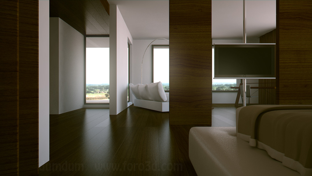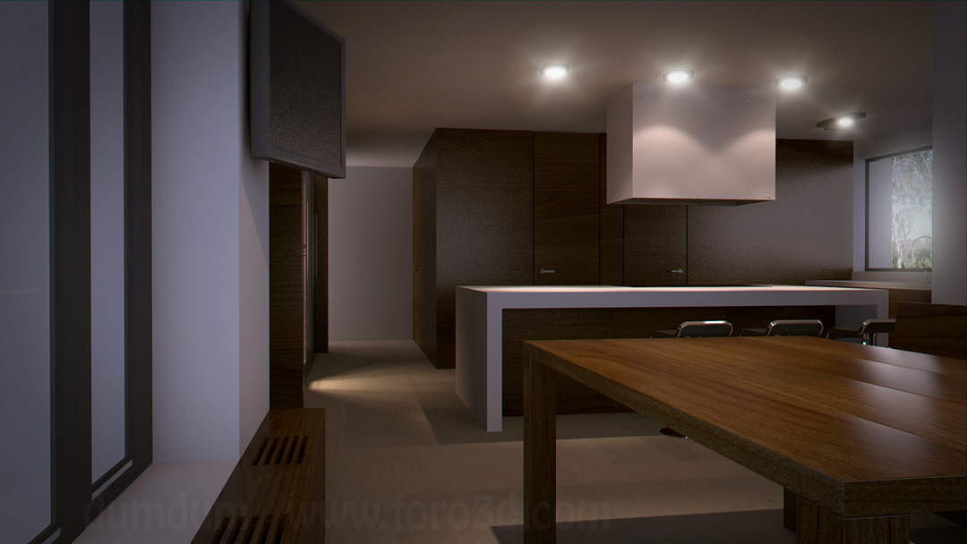 Bueno, lo que no he podido usar de Evermotion lo he modelado. Las luces son la mayoría calculadas en el pase de irradiancia, han sido unos 25 renders entre 1280 y 1920. Vray cámara, cielo y sol físico. Lfw. Photoshop para la postproducción y en tener el Quad Core sacaré vídeos para la reel trabajándolo todo un poco más.