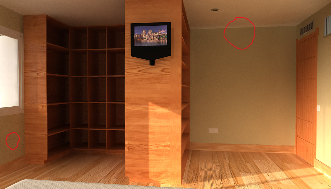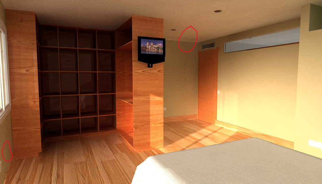 En las sombras, en el interior tengo una luz omni con sombras de área y en el exterior una spot también con sombras de área, además de la ambiental.