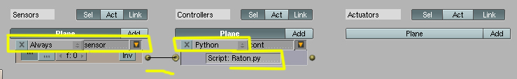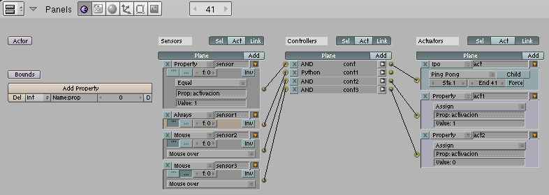 lo siguiente va a ser el poner dos sensores mouse con dos Actuators de tipo property.