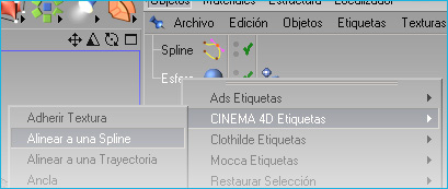 Ahora tenemos que asignarle la Spline como ruta a la esfera, para esto vamos a seleccionar la esfera y vamos a hacer clik derecho arriba y después vamos a Cinema 4D etiquetas->alinear a una Spline.