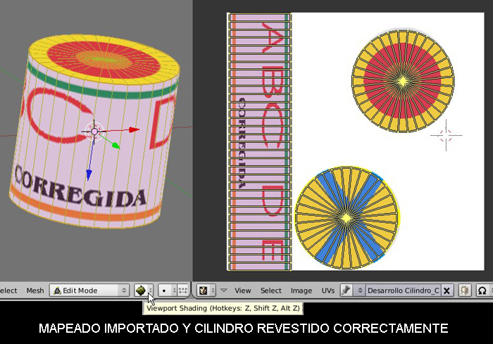 En la primera se observa como empleando el desarrollo ofrecido por Blender, al crear sobre el mapeado, queda totalmente descolocado, por lo que os digo, ya están descolocados los polígonos de altura.