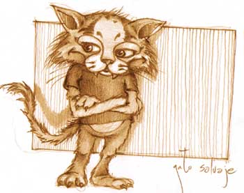 Olé Warex, muy bueno el personaje. Es muy bueno, de lo mejor que te he visto. Cosillas mejorables que le veo: no sé si será por la compresión de la imagen, pero el pelo del gato se ve raro, parece como apelmazado, no sé, no me acaba de convencer. Los colmillos son demasiado grandes y me parecen más de un tigre u otro felino no doméstico, pero imagino que era tu intención hacerlos así (por algo pondrá wildcat, ejem). También creo que puedes mejorar la mirada, no sé si soy yo, pero me da la sensación de que este un poco, ¿bizco?