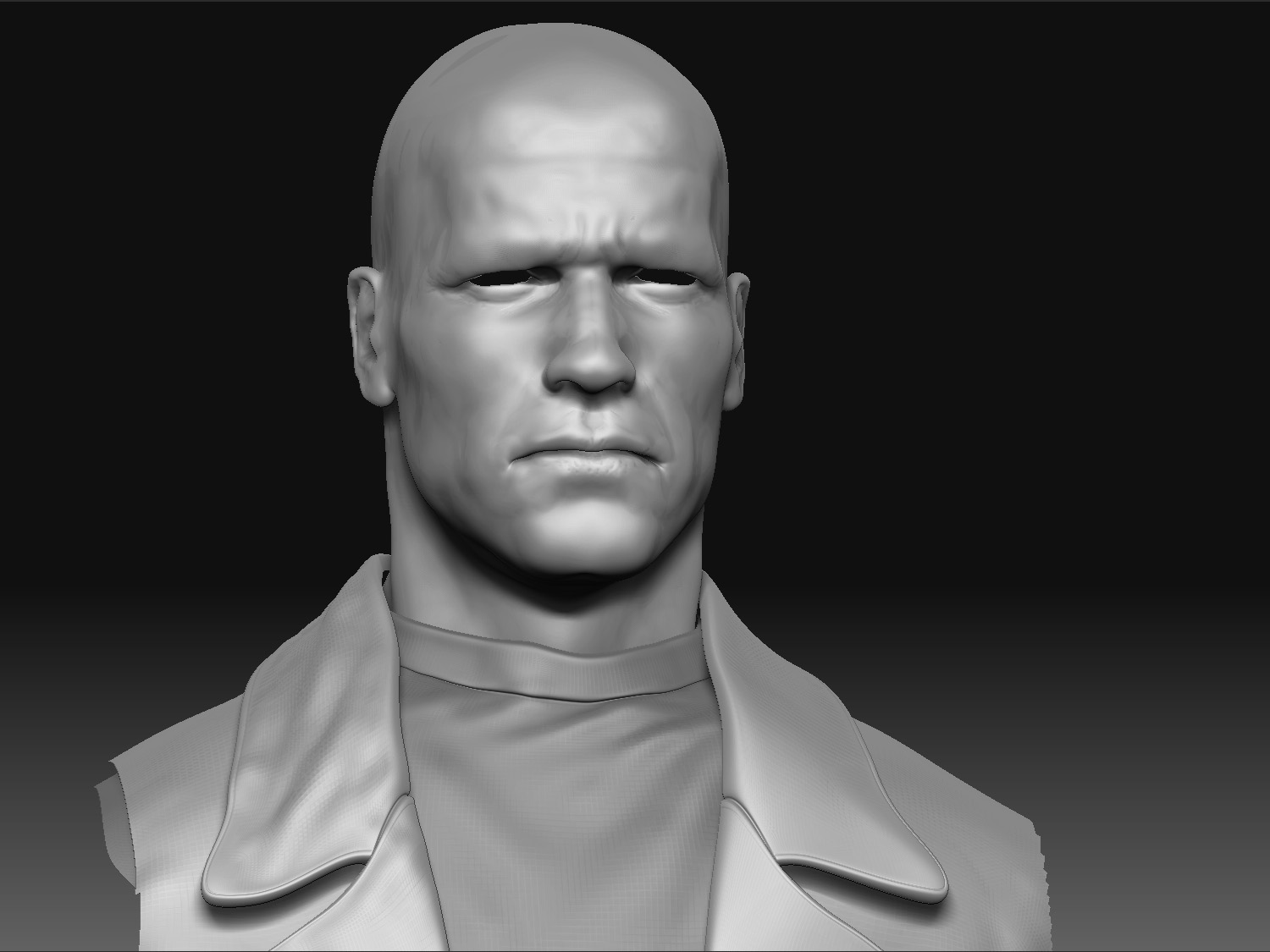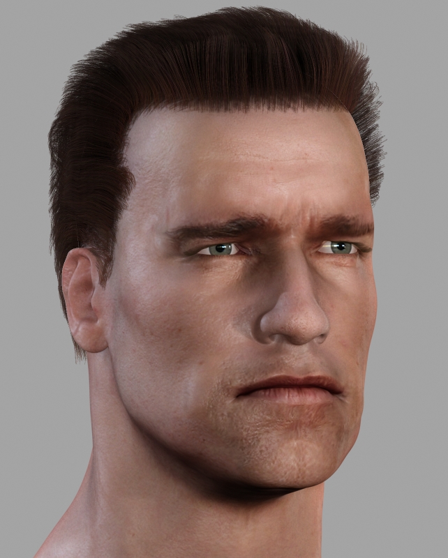 Bueno como estoy tela de liado, me han salido de sopetón dos curros, vaya suerte, pues ando algo más lento terminando cosas, ahí va un avance, de un Arnold Terminator que quiero terminar hasta medio cuerpo caracterizado cómo Terminator, por ahora tengo modelado hasta medio cuerpo, pero básico de max con pocos polígonos, y la cabeza aquí veis que le he empezado a dar caña en ZBrush, en breve más avances.