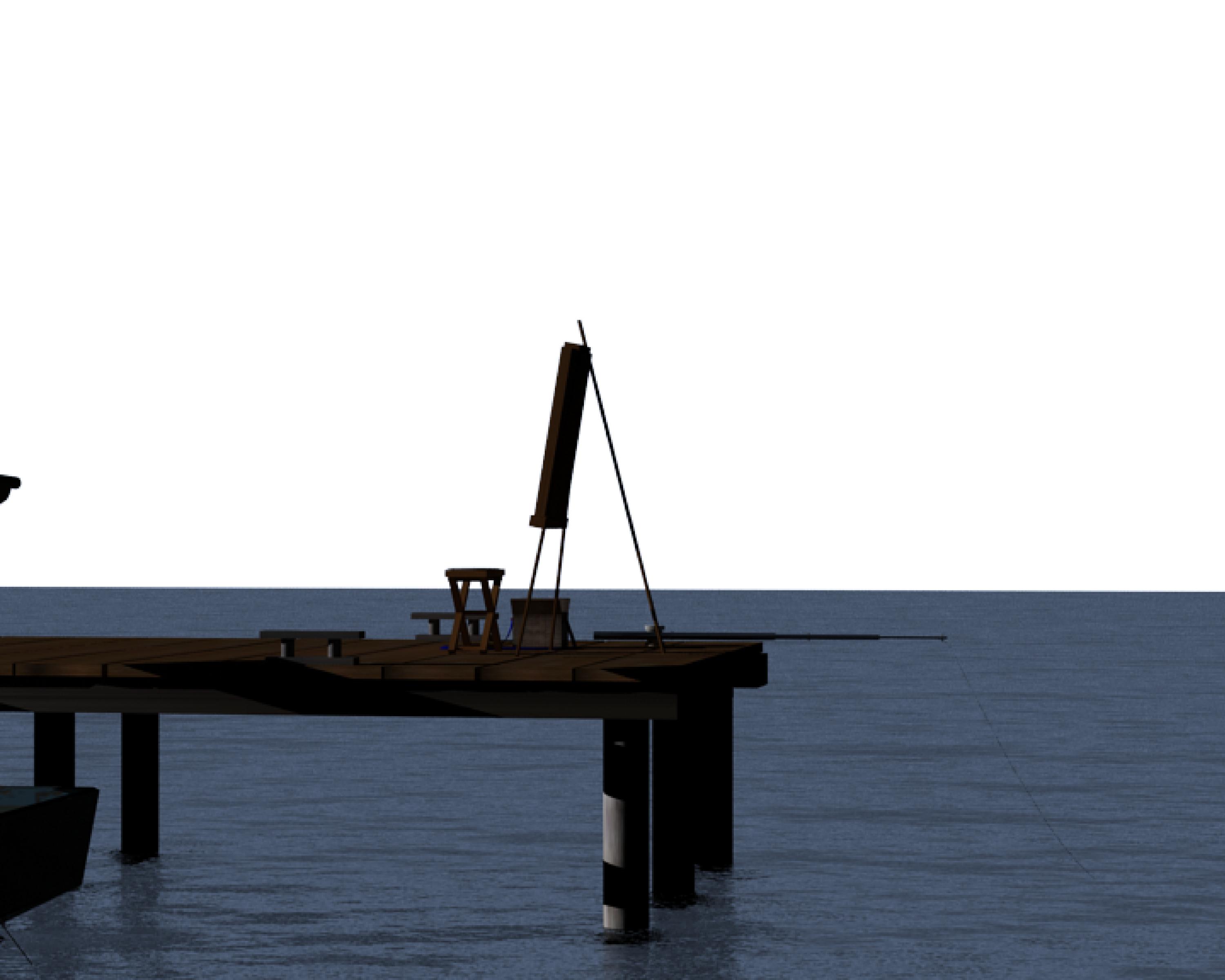 Pero tengo una duda no se refleja el embarcadero en el mar y no sé porque.