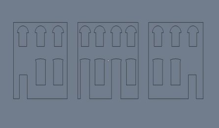 Primero importa los dxfs preparados. Notar que los perímetros de las ventanas están al lado exterior del arco de ladrillo sobre la apertura de la ventana y en el borde inferior del umbral de la ventana.