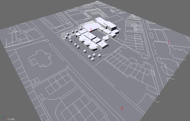 Puedes modelar la base de un paisaje para la localización de la misma forma, en la que se pretende poner los edificios. Importar un dxf 2d limpio del plano de localización, teniendo primero definidos los perímetros en el archivo CAD para los diferentes elementos del paisaje como la frontera de la localización, el área a ser plantada y cubierta con césped, y los contornos de las carreteras y senderos.