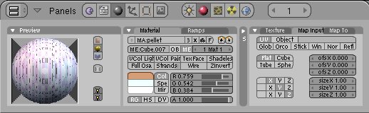 Importante: en este panel necesitas también presionar el botón Normal Map. Cambia al panel material [f5], y desde la pestaña Map Input selecciona UV. Selecciona también Nor de la pestaña map todo.