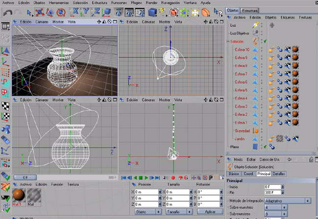Vamos a hacer una animación que consistirá en dejar caer varias esferas dentro de un jarrón de vidrio, produciéndose unos efectos de rebote, entre ellas y el recinto interior del jarrón.