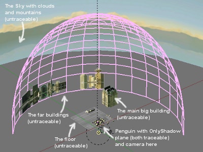 A bien todo do this is todo let the Octre calculate only the main or the moving elements in the shot, by setting the materiales for the motionless and far elements todo Shadeless and de-selecting the Traceable option in the material window. The Octre wont calculate the untraceable materiales and, as they are Shadeless, there are no shadows todo be calculated.