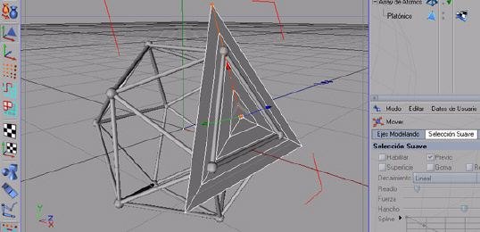 nota: si queremes hacer una escena más simple, sirve perfectamente tomar el tipo = tetraedro, que al tener sólo cuatro caras, será mucho más rápido de modelar que con el icosaedro de 20 caras. El principio del procedimiento es el mismo y, una vez entendido cómo funciona para un tetraedro, lo podremos aplicar usando un octaedro o icosaedro, que son poliedros regulares cuyas caras son todas ellas triángulos equilateros.