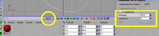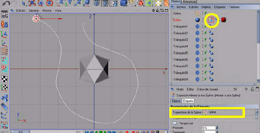 Le asignamos una etiqueta a la esfera, botón derecho sobre el objeto esfera seleccionado: Cinema 4D etiquetas > alinear a una Spline. Arrastramos esta Spline dentro del campo trayectoria de la Spline.