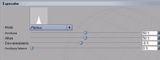 Vamos ahora al canal especular y ponemos unos valores como estos.