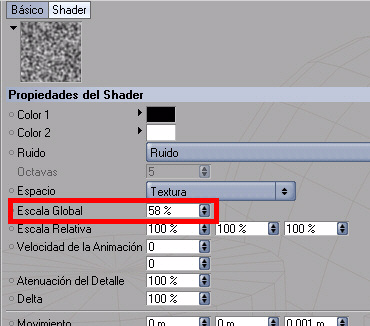 Entramos en las propiedades del ruido y lo único que cambiamos es la escala global, poniéndola a 58%.