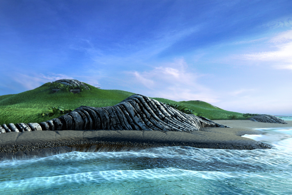 Pues a mí me recuerda a un tipo de acantilado que hay aquí, en concreto en la costa de zumaia, donde se puede ver las vetas de los estratos con esa forma característica que se ve en tu render, no sé si lo conocías, pero la verdad que es lo primero que me ha venido a la mente cuando he visto este trabajo.