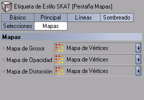 Esta etiqueta estilo skat sería el equivalente a una etiqueta de textura de un material normal, una especie de mapeador de skat, ya que permite definir un tipo de representación skat independiente de los parámetros generales de skat y de este modo poder combinar varios tipos de aspecto skat en una escena (o en un mismo objeto, añadiéndole varias etiquetas de estilo).
