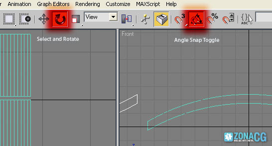 10) finalmente tenemos que rotar los 2 arcos que clonamos para obtener el efecto bandera del logotipo de Windows. Para ello, selecciona los 2 arcos, ve a la herramienta select and rotate y rota ambas formas 180 grados en el eje x. Asegúrate de tener activada la opción angle Snap toggle para obtener 180 grados justos.