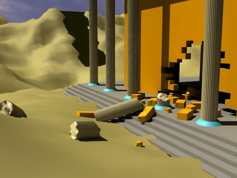 Y sí, la losas son super lisas. Algún mapa de relieve le habría sentado de fábula. En unos años cuando me sepa más y me de por mejorarlo y tal vez poner mi cara (originalmente me habría gustado hacerme a mí, como fetiche. Pero luego apareció el concurso y me puse a trabajar en ello en serio, con el enfoque que requería las bases del concurso y esa idea quedaba descartada. Es que el proyecto competo era ponerme a mi de sagitario y a un amigo de Pegaso y hacer una imagen de pelea supersalvaje con sangre por todas partes y armaduras rotas, pero es demasiado ambicioso y no sé hacer parecidos tan buenos todavía. Tal vez en el futuro).