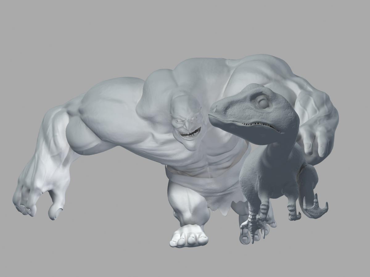 Pues la verdad es que tenía pensado hacer un seguno render en el que se viera el es quelreto del dino, y el bicharraco sentado con la tripa hinchada, vamos, que se lo come.