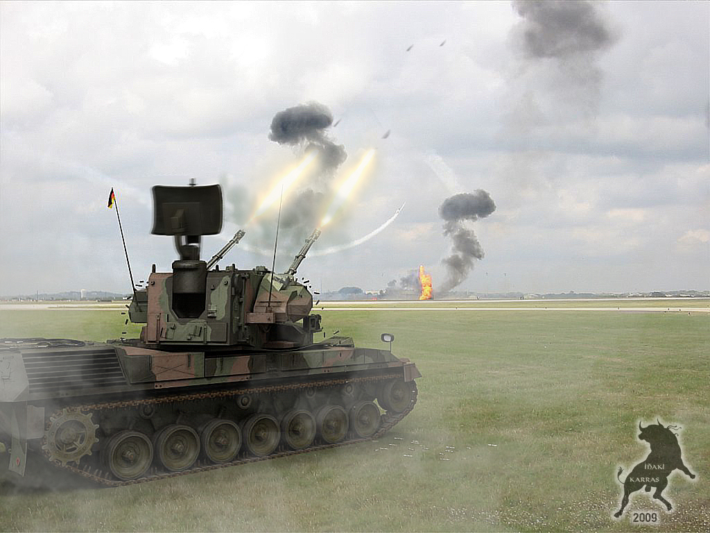 Otra versión del Gepard, para que se vea un poco más, el fondo es original, no lo he retocado yo, son aviones de verdad en una exhibición aérea, bueno ahora hay dos aviones menos, pero a mí no me busquéis.