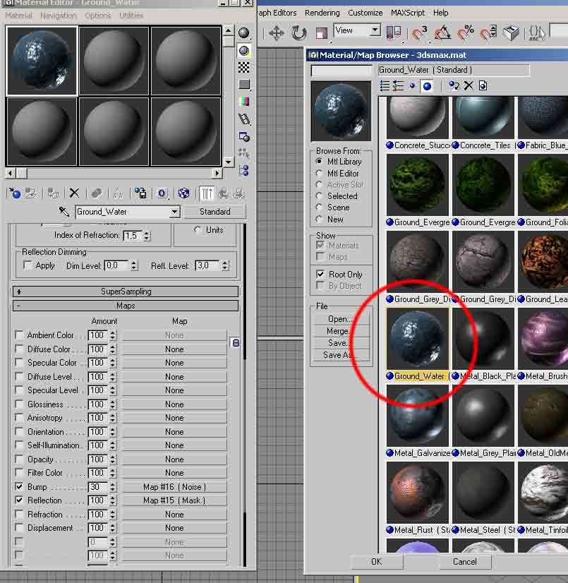 Hola otra vez, el Groundwater es un Shader standard de 3ds Max.