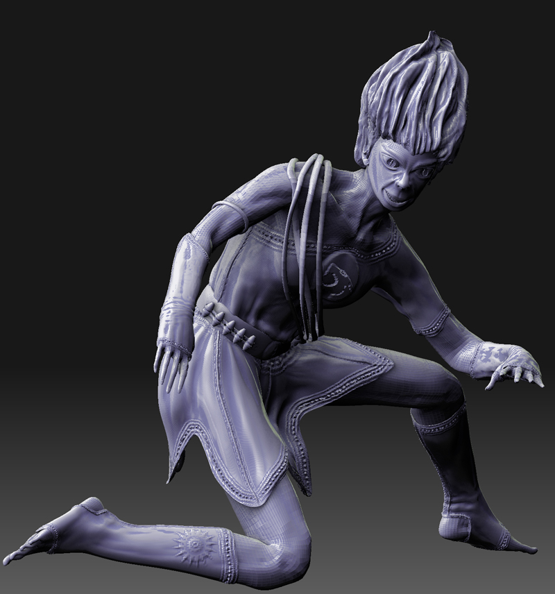 Otra cosa, haz usado extensivamente los alfas que trae ZBrush por defecto, eso está bien cuando no son el fin en sí mismos de lo contrario cantan demasiado sobre toso si cuelgas tus trabajos en un foro especializado, vamos es como aplicar un filtro de Photoshop solo para ver lo que hace el filtro, le da un aspecto muy poco profesional a demás de lo que te te han comentado.