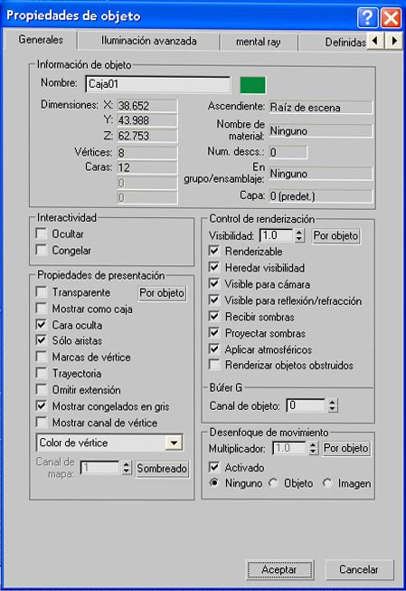 5. Renderización, animación, cinemática inversa, gizmos, max script, radiosidad, Mental Ray. No hay ninguna modificación que sea necesaria, en principio. La significación de los principales parámetros, que pueden modificarse también desde los cuadros de diálogo correspondientes ya se verá, más adelante, en los capítulos y secciones correspondientes.