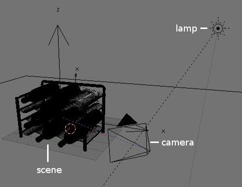 The scene, besides the product itself, is Simply a white plane, and a Sun Lamp, nothing more, very simple.