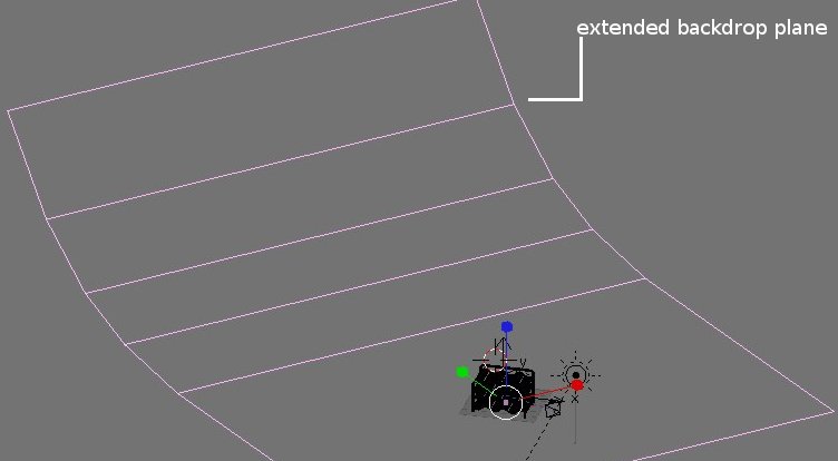 Similar todo the previous example. The base plane is not enough however, as you Will se its Edge in the render. To fix this, make the farther end of the plane curve up into the Air, high enough todo block all of the Camera filed of view. Make sure this curve starts farther than the shadows of the object, otherwise you Will se the shadow curve up unnaturally into the Air.