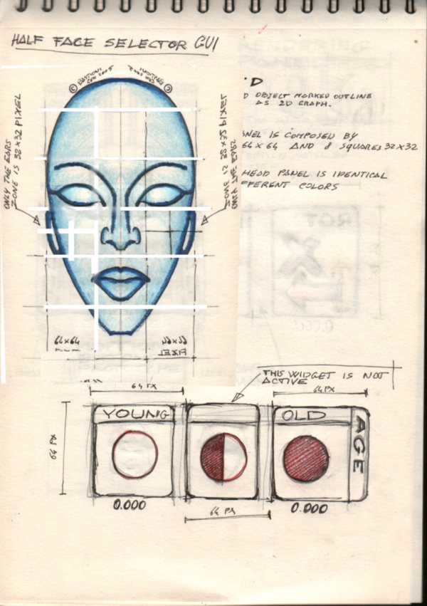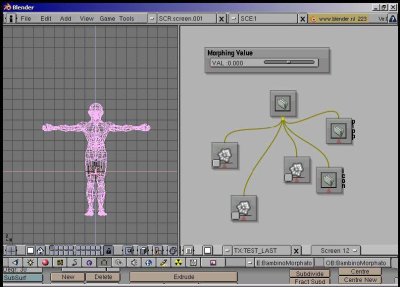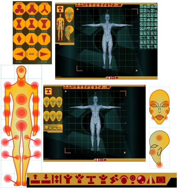 Even if the GUI was defined, and the morphing code was mostly ready, there was another delicate and important problem: the realization of base humanoid, which had all the necessary characteristics for it todo be transformed into any character, and which was a los an optimized Mesh, from which could be created the character of a movie or a Low resolution character suitable for video games.