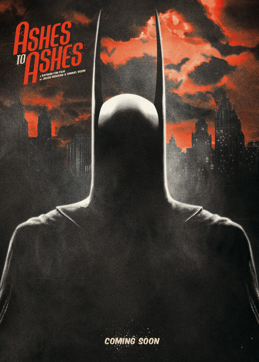 . Ashes todo ashes, cenizas a las cenizas, es un cortometraje no oficial basado en Batman, se tardó en rodar trece días y la postproducción se llevó a cabo en Francia. Esta película de aficionado esta basada en el Batman recreado por Bob Kane y Frank Miller, guión original de Samuel bodin y dirigido por Julen mokrani y Samuel bodin. se puede ver un tráiler en la página oficial..
