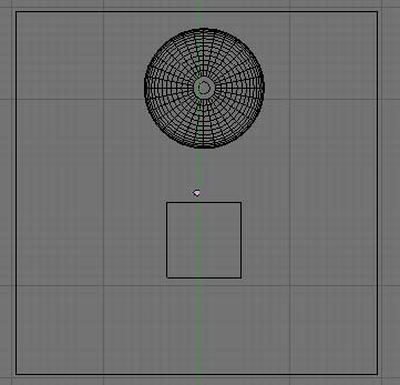 Iniciamos un nuevo archivo de Blender para este ejemplo, y colocamos tres objetos, una esfera (vSphere), un cubo, y otro cubo de mayor tamaño.