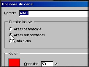 Marcaremos en <áreas seleccionadas> para que sea esta selección (el fondo) lo que forme el canal alfa.