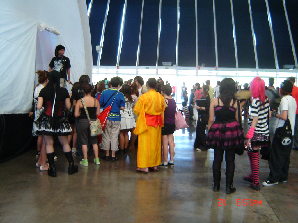 La pobre chica se aburría mucho sola allí arriba. Me dijo que se sentía como la proverbial princesa recluida en la torre. Aunque era muy simpática, y me acompaño fumando y tomándose una cerveza también, yo estaba impaciente por presentarme a los del foro (hola. Soy Dexter.) y darme una vuelta para ver las instalaciones y a la muchachada cosplay.