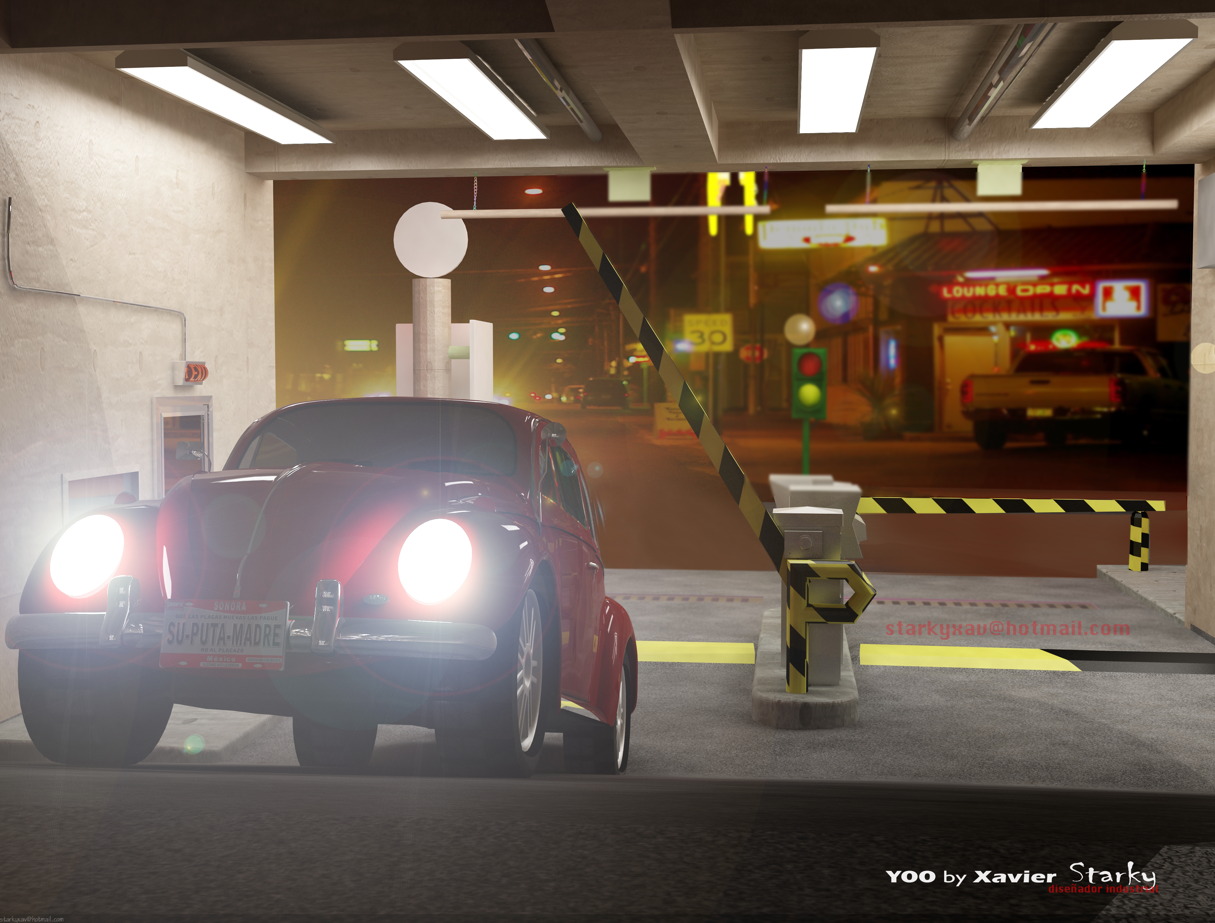 Hola. Me gusta el efecto y el modelado. Creo que hay que corregir dealles como la definición de los bordes (aliasing), ese serruchado le quita realismo a la imagen, se ve muy notorio en las luces del techo y la barrera.