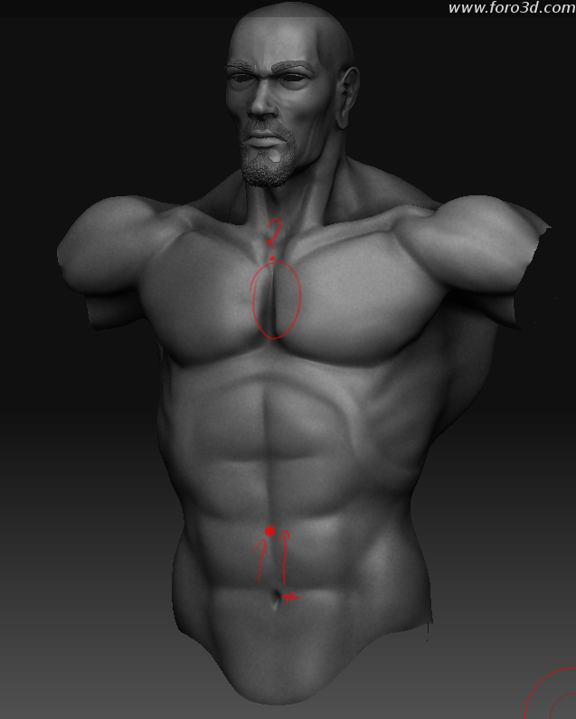 Bueno como me comentaron en otro foro, tenía fallos de anatomía, que son los que he retocado ahora como el deltoideos, la clavícula y la intersección de los músculos en esa zona.