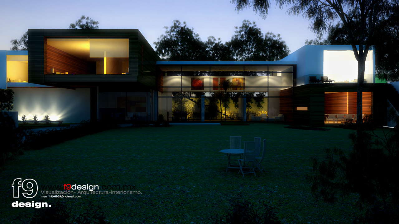 Amigo están excelentes tus renders solo por comentar algo en la nocturna veo muy lejos esas sillas en medio patio sino fuera por los interiores te competiría protagonismo, en la segunda imagen creo que te falto un poco de relieve en el suelo, además las plantas frente al cubo café están muy simétricas en cuanto tamaño y forma, el diseño arquitectónico de ambas esta excelente, de quien es?
