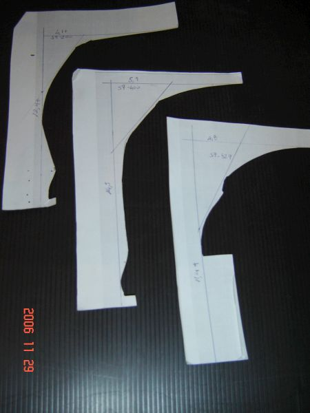 Another trik in which Blender helped me, was preparing cardboard templates of some given body sections. I subdivided the whole length of the xv in 12 sections and Cut the car body After those sections. After rendering each section Cutout, scaling them in the Gimp and then printing, we only have todo stick each section on a cardboard piece and carefully Cut the hollow part. After this operation, the only thing todo do remains Marking the sections on the working board according todo the distances of the sections we have in Blender, so we can place the right section at the right distance todo chek the work progress.