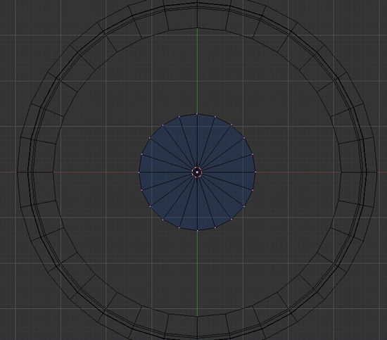Select the entire object and press e todo extrude again and hit enter without moving your selection. From the side view move the extruded vértices down a bit until the tuve you are creating is the size of a Rim. Se fig 3 and 4.