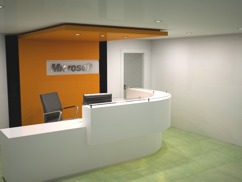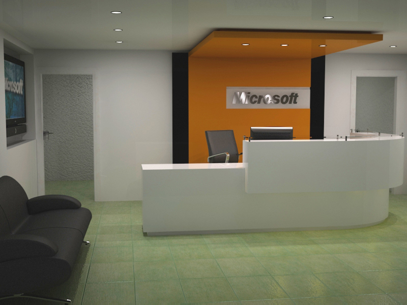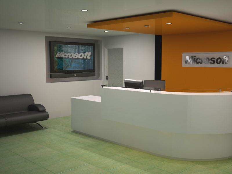 Trate de una remodelación de la recepción de las oficinas de Microsoft en Caracas Venezuela. Utilice 3ds Max 2009 Vray 1.50 service pack 2.