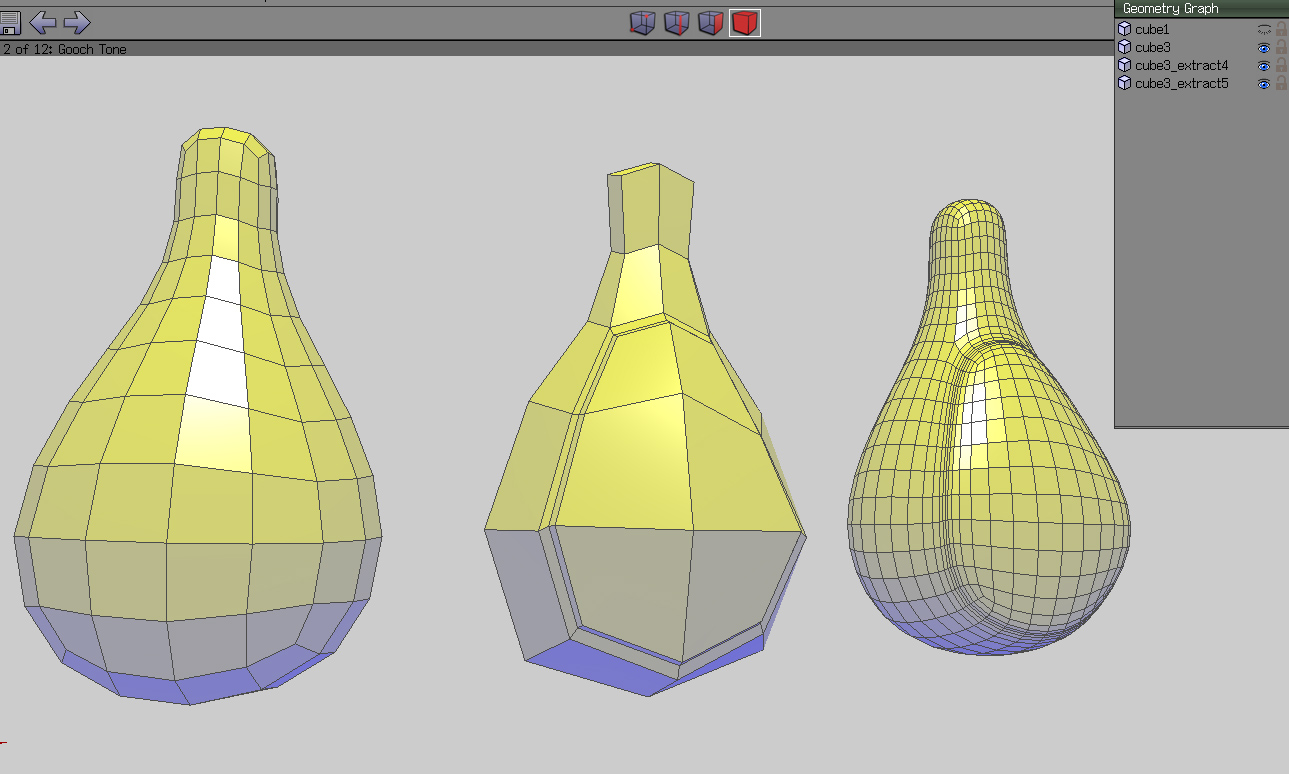 90, eso es un derroche de geometría, si eso es con un pingüino que no es más complejo que una pera de boxear me imagino cuando hagas formas más complejas, con una forma como la central de mi ejemplo te basta y te sobra para modelar, tienes que tratar de ahorrar geometría, eso te ahorrara muchos dolores de cabeza porque, aunque no lo creas el tener polígonos a granel no te ayuda a conseguir buenas forma, de hecho, la mayoría de las veces hace todo lo contrario.