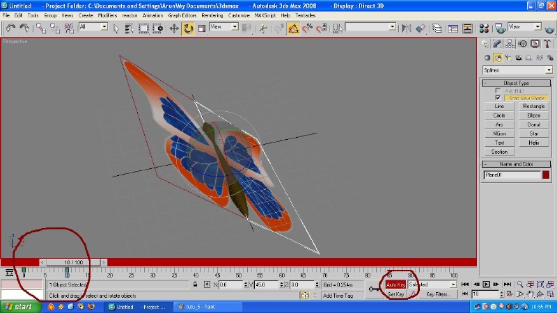 4.- Now comes the animation part, enable the auto key, change time slider todo 10 frame and rotate the left Wing slightly downwards.
