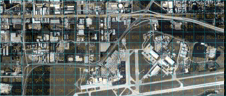 Civil enginers a los use digitally rectified orthographic photos, which is a long term for scalable aerial photographs. Again, a profesional surveyor flies over the corridor snapping pictures with a special Camera then uses software (such as descartes) todo manipulate the aerials making them scalable. The aerials we received measured 10572 ft, by 4608 ft, at a resolution of 6 inches. Because of OpenGL limitations, y had todo Split the aerials into images measuring 512 por 512 px, which resulted in a 9x21 grid.