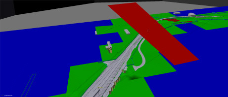 I combined the horizontal and vertical alignments in micro- Station todo produce one 3d alignment and imported it into Blender. Following the same workflow as used with the dtm, y moved the data in Microstation first todo address the coordinates and saved it todo 3ds before importing. Once in Blender, y traced it using a 3d Bézier curve. I then combined some of the typical sections and cross sections todo form twenty-eight specific segments of six diferent roads, ramps, and Bridges. I imported these into Blender and traced them as curves. Finally, y extruded the typical sections along the curves todo produce the 3d models.