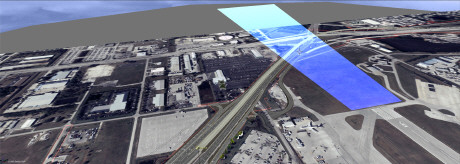 I added a semi-transparent red fence representing the required right-of-way (property lines), and a semi-transparent blue plane representing the glide Path todo the adjacent runway.